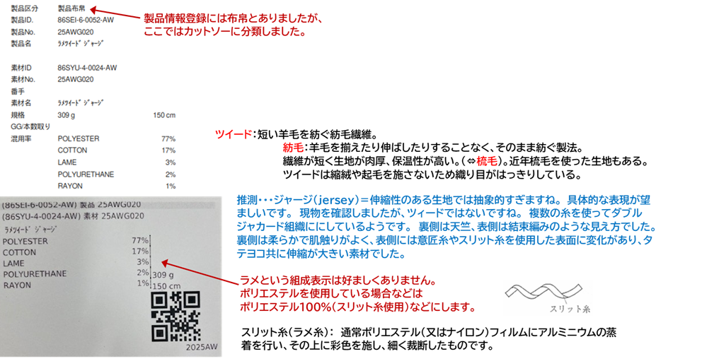 生地大分類:カットソー